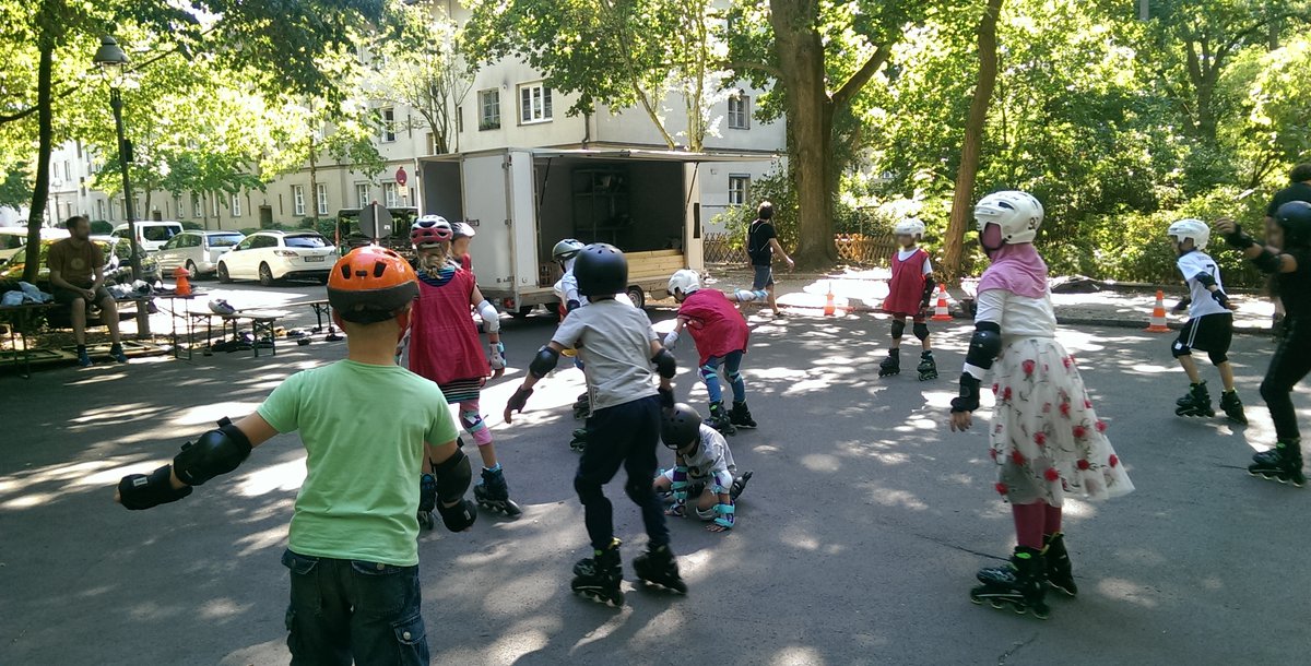 Das skatemobil besteht aus einem mit Leihmaterial gefüllten Fahrzeug mit Anhänger und verwandelt öffentliche Plätze in einen Begegnungsort für Kinder und Erwachsene aus der Nachbarschaft. Unter Anleitung von ausgebildeten Trainer*innen der Spreewölfe Berlin können Kinder auf spielerische Art und Weise das Inlineskaten lernen. Mit dabei ist eine mobile Bande, mit der wir jede graue Betonfläche in ein Spielfeld verwandeln können.