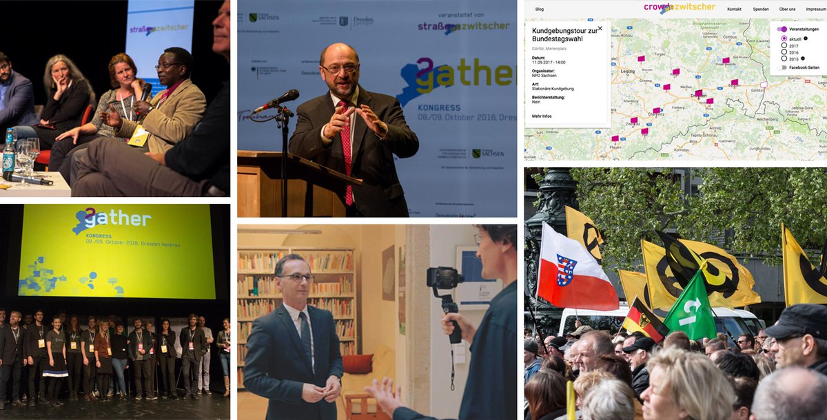 Straßengezwitscher e.V. ist ein gemeinnütziger Verein aus Dresden, der es sich zum Ziel gesetzt hat, das bürgerliche Engagement für die Demokratie zu fördern. Kernstück von Straßengezwitscher ist der mit dem Grimme Online Award 2016 ausgezeichnete Twitter-Kanal @streetcoverage, über den Reporter über fremdenfeindliche Kundgebungen in Sachsen berichten. Später wurde die Informationsplattform #crowdgezwitscher ins Leben gerufen. Das dritte Betätigungsfeld des Vereins ist die Ausrichtung und Durchführung von Veranstaltungen, etwa des “2gather”-Kongress gegen Rassismus und Fremdenfeindlichkeit im Oktober 2016 in Dresden.