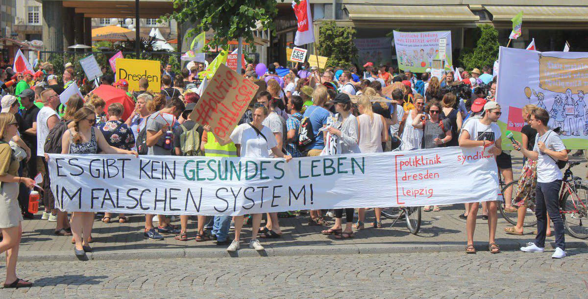 Verschiedene Berufe des Gesundheits- und Sozialwesens sollen eng zusammenarbeiten. Da viele Krankheiten auf gesellschaftliche Bedingungen zurückzuführen sind (z.B. Stress durch unsichere Arbeitsverhältnisse), möchten wir zudem Kämpfe für eine gerechtere Gesellschaft unterstützen und mit dem Thema Gesundheit in Verbindung bringen (z.B. Kämpfe um bessere Arbeitsbedingungen). Die Menschen eines Stadtteils sollen die Poliklinik als erste mögliche Anlaufstelle bei gesundheitlichen, sozialen und politischen Problemen kennen und nutzen. Sowohl Besucher*innen, als auch Mitarbeiter*innen sollen an der Gestaltung der Poliklinik teilhaben. Wir verfolgen eine solidarische, kollektive und hierarchiearme Arbeitsweise. In unserer Gruppe sind eine Vielzahl an Berufsgruppen vertreten, z.B. Psycholog*innen, Sozialarbeiter*innen, Mediziner*innen und Jurist*innen. Bisher findet die Arbeit am Projekt