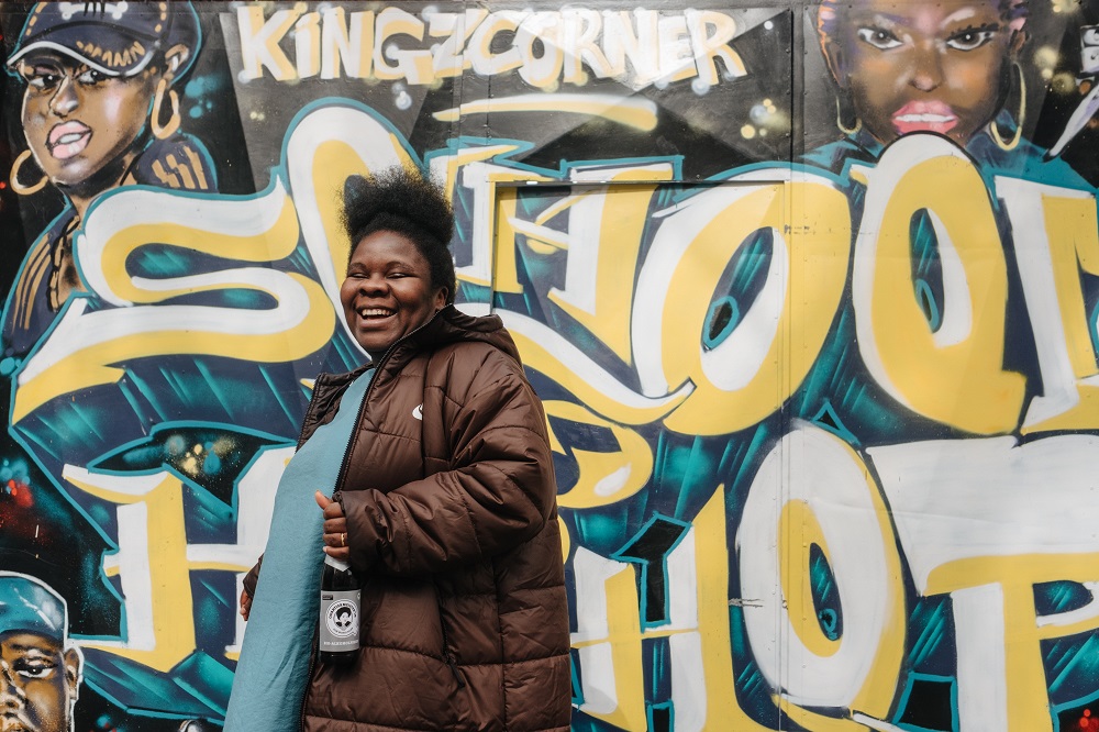 Schon bemerkt? In den letzten Jahren bestücken wir unserer Flaschen zunehmend mit echten Quartiermeister*innen, die sich für Andere einsetzen. Damit würdigen wir einerseits vielfältiges Engagement zum Wohle aller. Andererseits werden wir damit unserem Anspruch gerecht, die Diversität unserer Gesellschaft zu repräsentieren und marginalisierten Personengruppen eine Plattform für ihre Anliegen zu geben. Dazu gehört mit der Aktivistin Emilene nun auch die Perspektive von Schwarzen Frauen in Deutschland. Emilene versteht sich selbst als eine Quartiermeisterin, „weil ich mich gern für Andere einsetze. Ich brenne für Gerechtigkeit, die Anerkennung von Kunst und Musik und die Repräsentanz Schwarzen Frauen in unserer Gesellschaft“.