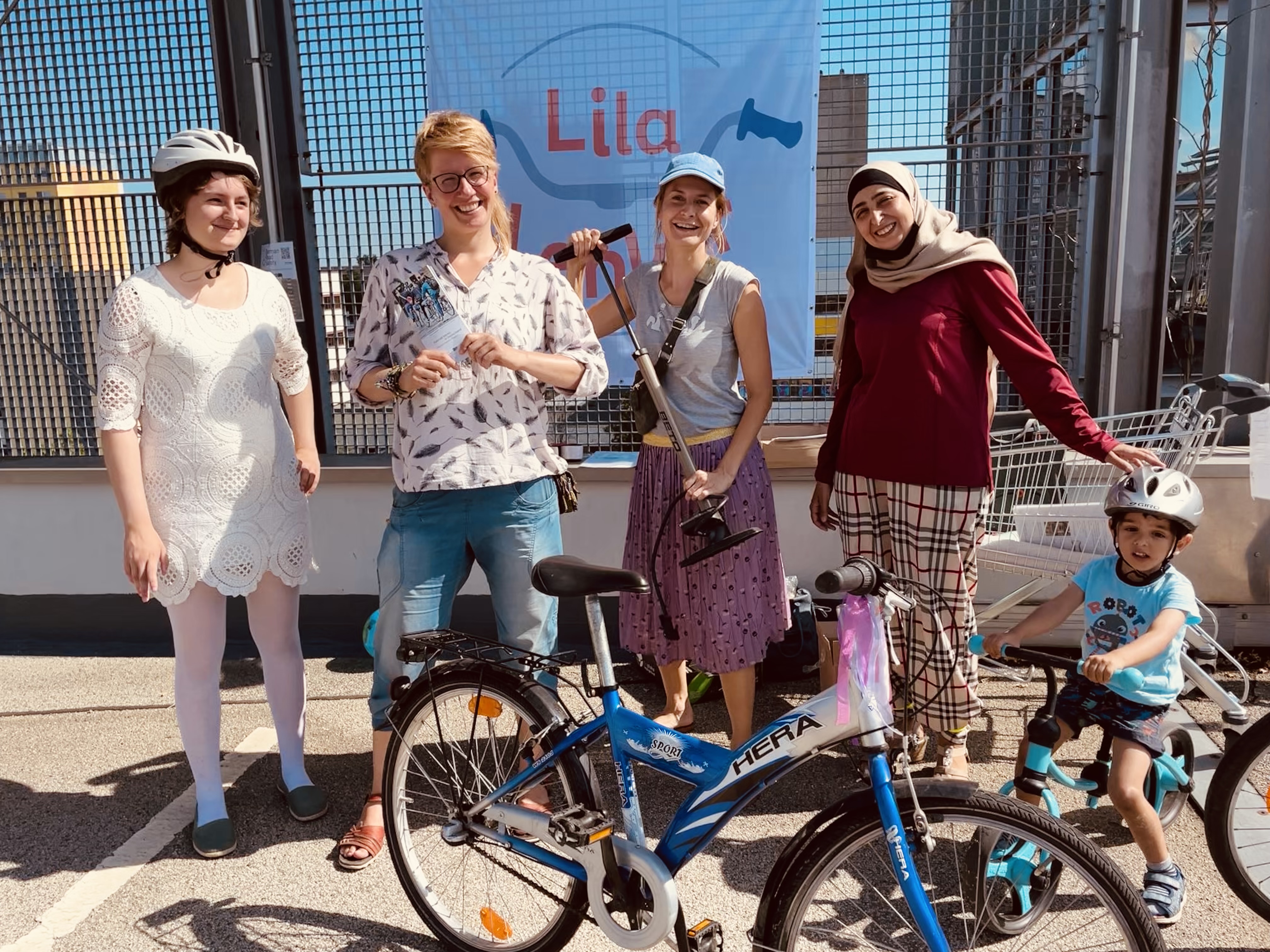 Lila Lenker ist ein Zusammenschluss von einer Handvoll Frauen aus Leipzig, die Frauen mit Flucht- oder Migrationsgeschichte ehrenamtlich das Radfahren lehren. Neben der Fähigkeit ein Rad zu fahren, erlangen die Teilnehmerinnen dadurch auch selbstständige Mobilität und können so an den Angeboten der Stadt Leipzig besser teilhaben.