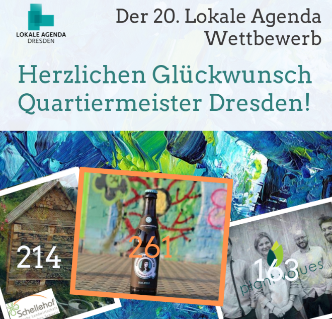 annika.bruemmerWir sind total aufgeregt! Zum aller, allerersten Mal könnt ihr für UNS voten, denn Quartiermeister hat sich für die Online-Abstimmung des Publikumspreises der Lokalen Agenda Dresden in der Kategorie Nachhaltiges Wirtschaften qualifiziert.