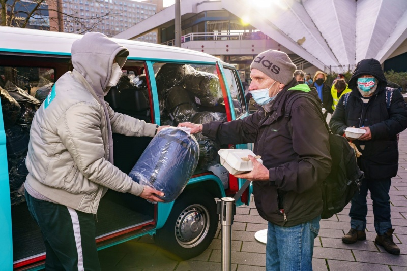 Wegen der Pandemie kann diese Tradition zum zweiten Mal nicht in der gewohnten Form stattfinden. Statt einem großen, gemeinsamen Weihnachtsessen im Estrel fahren auch dieses Jahr von Dezember bis April erneut Foodtrucks der Caritas durch Berlin und versorgen Obdachlose und Bedürftige mit warmen Mahlzeiten, Equipment für den Winter und Hundenahrung. Es wird sogar die Möglichkeit geben, sich impfen zu lassen.
