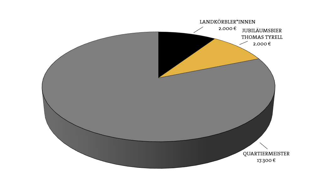 Auch wenn wir in diesem krisengeschüttelten Jahr nur insgesamt 21.300 € Fördergeld gemeinsam verwalten und verteilen konnten: Wir sind uns sicher, dass die Fördersummen im kommenden Jahr wieder steigen werden. Zudem bemühen wir uns um zusätzliche Einnahmequellen. 2021 konnten wir beispielsweise über die Fördergelder der GmbH hinaus Spenden aus dem Jubiläums-Bier-Menü von Thomas Tyrell, sowie Spenden des stay-social-Clubs, einer Aktion von Landkorb für unsere Mission nutzen. Außerdem ist es neuerdings auch möglich, privat für die Arbeit und den Ausbau der gemeinnützigen Quartiermeister Stiftung gUG zu spenden.