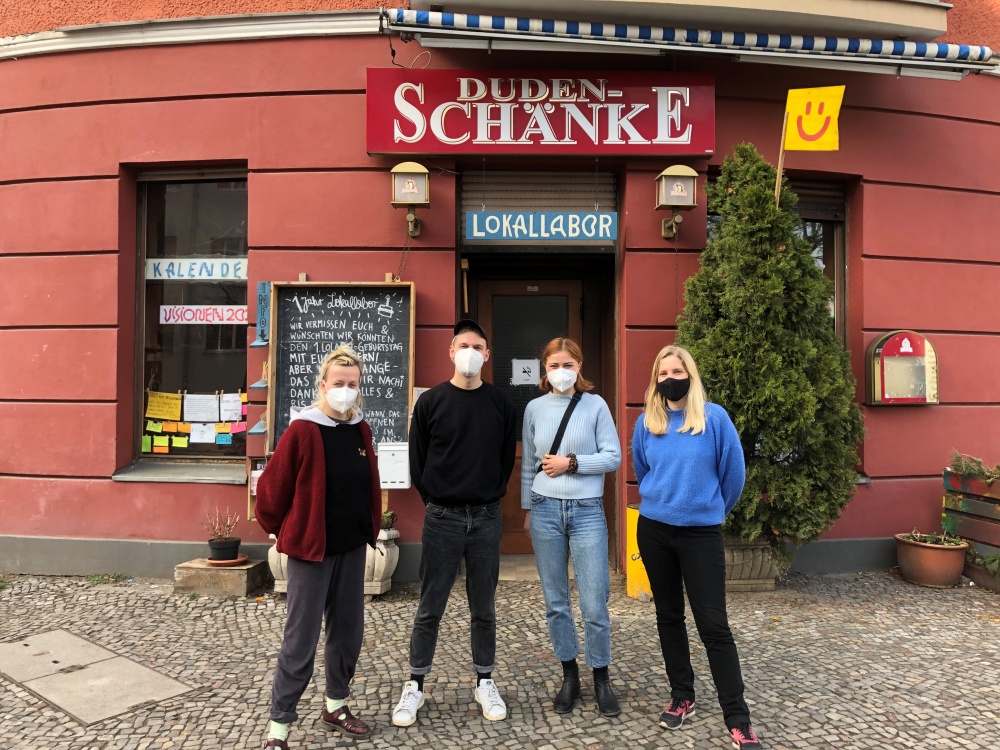 Wie aus der ehemaligen Eckkneipe „Dudenschänke“ der unkommerzielle Begegnungsraum „Lokallabor Dudenschänke“ wurde? Das ist eine Geschichte mit vielen Umwegen. Sie beginnt mit Erika, der ehemaligen Wirtin. Sie führt die Eckkneipe 44 Jahre lang, bis sie es aus gesundheitlichen Gründen nicht mehr kann. Johanna, die im selben Haus wohnt, bekommt ihr Fehlen mit. Sie studiert zusammen mit Tobi und Beatrix in Potsdam Urbane Zukunft. Sie alle haben sich im Zuge des Studiums viel mit dem rasanten globalen Wandel beschäftigt und mit Wegen, wie jeder seinen Platz darin finden kann.