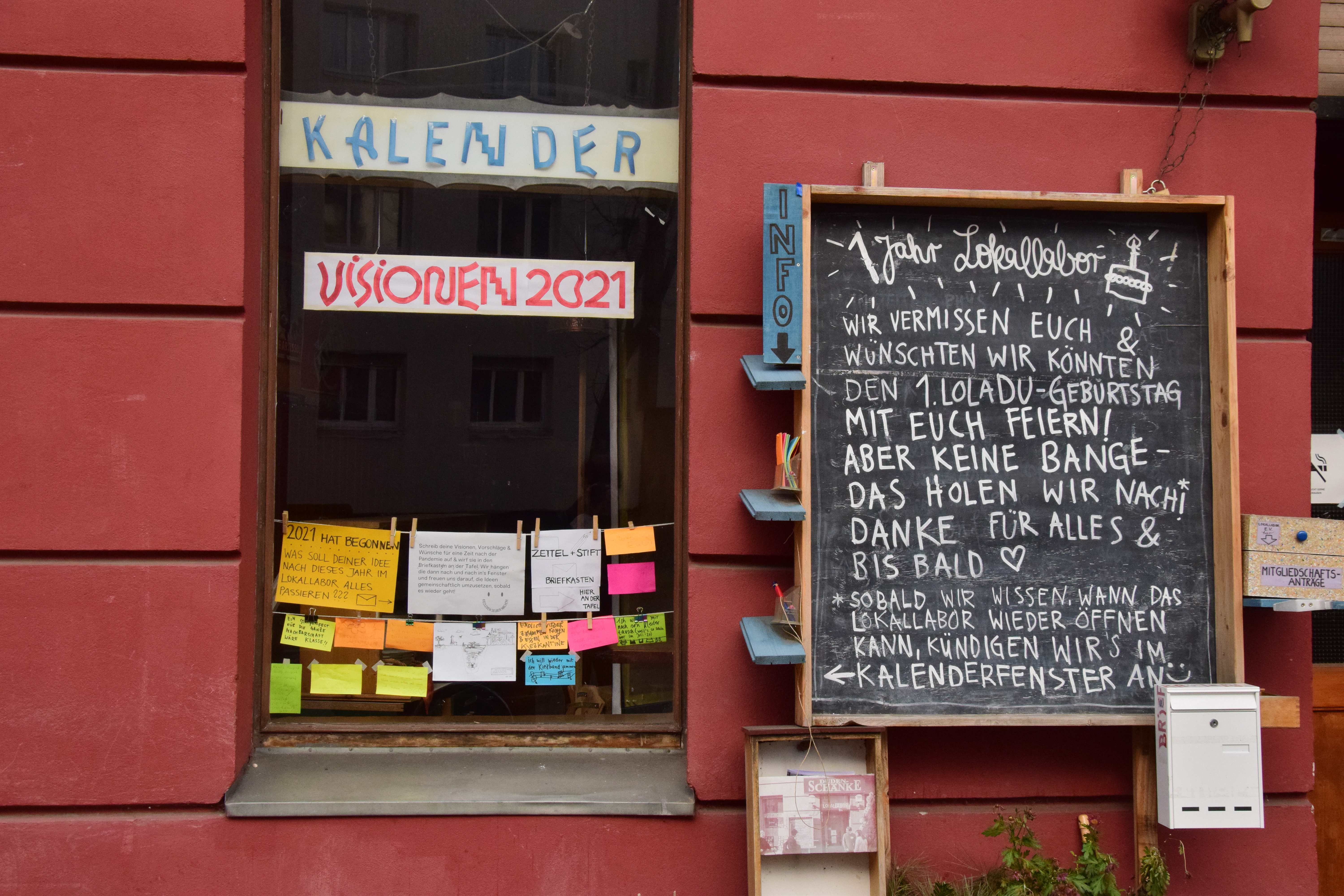 Das Lokallabor wurde von ihnen Anfang 2020 in der ehemaligen Eckkneipe „Dudenschänke“ eingerichtet. Es ist kurzgesagt ein öffentlicher Raum, in dem Menschen aus der Nachbarschaft zusammenkommen können. Sie tauschen dann Projektideen und Anliegen aus und setzen diese gemeinsam um. Ob eine Jamgruppe, oder das Anlegen von Beeten – den Ideen sind keine Grenzen gesetzt. Wichtig ist nur: Ein Beitrag zur Kiezkultur!