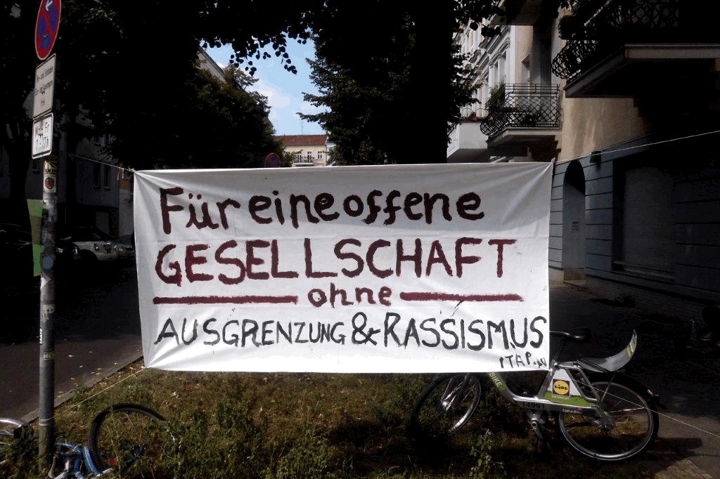 In der Nachbarschaft gibt es eine breite Akzeptanz und viele positive Rückmeldung zu unserer Arbeit, gleichzeitig haben wir es aber auch immer wieder mit Diffamierungen, Vandalismus und Angriffen gegenüber unserem Verein zu tun. Dies ist in der Vergangenheit bspw. auf Kundgebungen passiert oder in Form von rassistischen Botschaften in unserem Briefkasten („Friedrichshain bleibt Deutsch“). Erst im Dezember letzten Jahres wurde wieder eine Sachbeschädigung begangen und Türschilder und Plakate wurden von der Hausfassade gerissen.