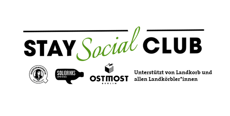 Das Ganze funktioniert so: Alle Landkörbler*innen – das sind die Menschen, die sich über den Lieferdienst Landkorb Bio-Produkte nach Hause liefern lassen – haben die Möglichkeit, nebst ihrem Einkauf zusätzlich für die gute Sache zu spenden. Die gute Sache ist in diesem Fall der Stay Social Club. Und dieser besteht wiederrum aus den drei Vereinen, die OSTMOST, Solidrinks und Quartiermeister angehören und sich mit ihrem ehrenamtlichen Engagement für die gute Sache einsetzen.