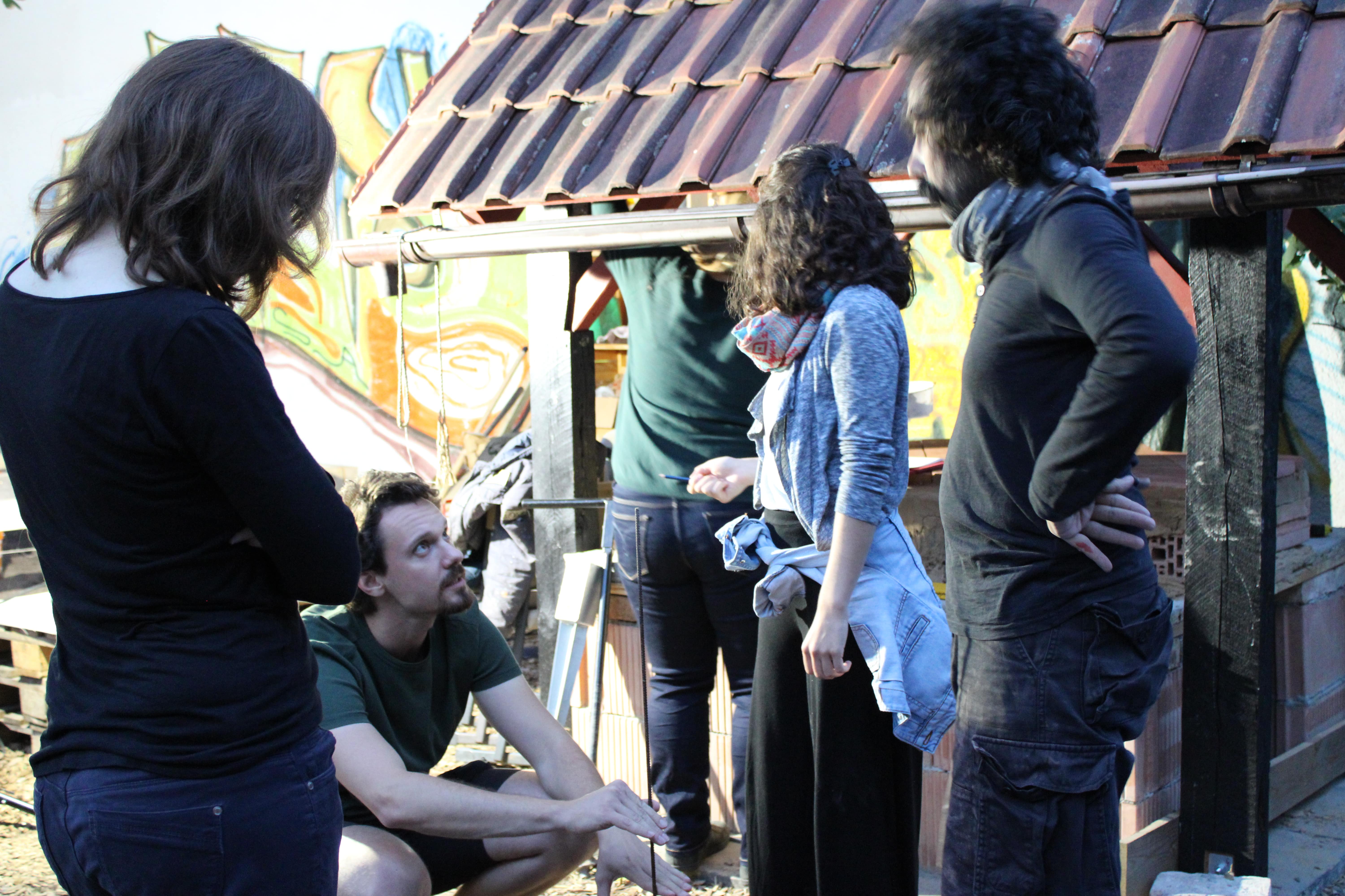 Mithilfe der Quartiermeister-Förderung bauen die Wilden Gärtner*innen jetzt einen Lehmofen, den sie für Pizzaabende benutzen wollen. Der Ofen soll noch fertig werden, solange es warm ist. Niemand hier hat Erfahrung mit dem Bau von Lehmöfen, aber Diego und Michi hatten Lust darauf, haben sich belesen und sich von den Mitgliedern des Gemeinschaftsgartens Himmelbeet im Wedding beraten lassen. Learning by Doing ist auch das Motto fürs Gärtnern bei den meisten Menschen in der Wilden 17. Günther, einer der Gründungsmitglieder, ist Botaniker und somit Experte, für viele andere ist es der erste Kontakt mit dem Gärtnern. Über den Lehmofen sagt Janine: „Die Idee ist, dass der Garten noch mehr zu einem Nachbarschaftstreffpunkt wird. Mit dem Pizzaofen können wir regelmäßige Termine zum gemeinsamen Pizzabacken festlegen. Dann besuchen uns noch mehr Leute, die vielleicht nicht zum Gärtnern vorbeikommen würden. Außerdem können wir dann das angebaute Gemüse direkt verarbeiten“. Diego ergänzt: „Und es kommen mehr Nachbar*innen, so kann mehr Austausch stattfinden. Man trifft Leute, die man sonst nicht treffen würde. Menschen kommen hier unabhängig von Alter, Bildungsstand oder Herkunft her.“