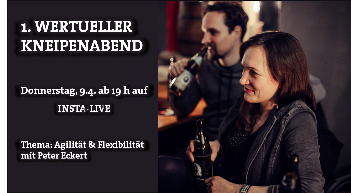 lisa.wiedemuthVermisst ihr auch stinkenden Zigarettenqualm, klebende Theken und Menschen die über dröhnende Musikboxen schreien? All das können wir euch nicht bieten! Und trotzdem möchte der Quartiermeister Verein nicht auf seine monatlichen Kneipenabende verzichten. Deswegen treffen wir uns am Donnerstag den 9. April ab 19Uhr das erste Mal auf Insta-Live zum "Wertuellen Kneipenabend! Jede*r kann deutschlandweit auf ein Bierchen vorbeikommen und gemeinsam sinnieren, stammtischartig diskutieren oder sich einfach berieseln lassen! In jeder Folge diskutieren wir über den Wandel eines ganz bestimmten Wertes - vor, während und nach Corona, bei uns persönlich, bei Quartiermeister, in der Wirtschaft und Gesellschaft.