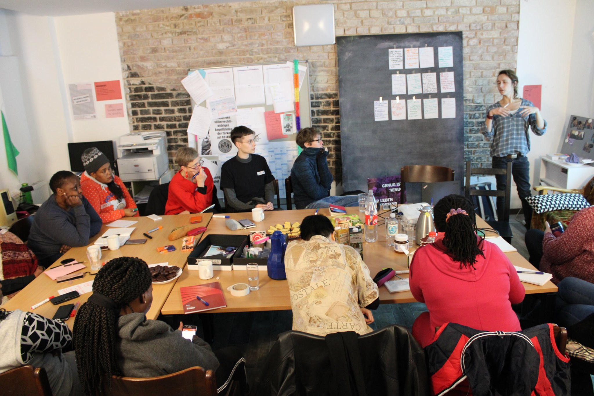 Das wohl größte Projekt in diesem Jahr war die Umsetzung des 1. Quartiermeister Stipendiums. Die Resonanz war riesig: Ganze 36 Projekte hatten sich auf diese Förderung in Berlin beworben. Umso glücklicher waren wir nur eine Vorauswahl treffen zu müssen und die endgültige Entscheidung an eine hammer Jury zu übergeben: Michael Vollmann von nebenan.de, Sabrina Apitz vom Kulturförderpunkt, Helwig Fenner von Mein Grundeinkommen und Marius Hasenheit vom transform Magazin. Auch das war eine Premiere für uns: Den Finalistenprojekten die Möglichkeit zu geben, sich und ihre Idee persönlich einer Jury vorzustellen. Im Juli zeichneten wir dann auf dem Projektsommerfest das Gewinnerprojekt "International Women* Space" aus. Seitdem reisen die Frauen dank unserer Unterstützung mit ihrer "Break Isolation Tour" durch verschiedene Aufnahmelager in und um Berlin, um geflüchtete Frauen vor Ort zu empowern, ihnen mit einem Netzwerk an direkten Unterstützungsmöglichkeiten zur Seite zu stehen, sie über ihre Rechte aufzuklären und über Missstände vor Ort öffentlichkeitswirksam zu berichten. Der erste Stipendium Workshop fand im Dezember zum Thema "Erfolgreiche Kommunikation und PR-Arbeit" in ihren Räumen statt. Der Workshop war ebenfalls für die anderen Bewerber*innen des Stipendiums offen, sodass sich ein bunter Mix an verschiedenen Projekten zusammenfand, der sich mit hilfreichen Tipps und Kontakten gegenseitig weiterhalf.