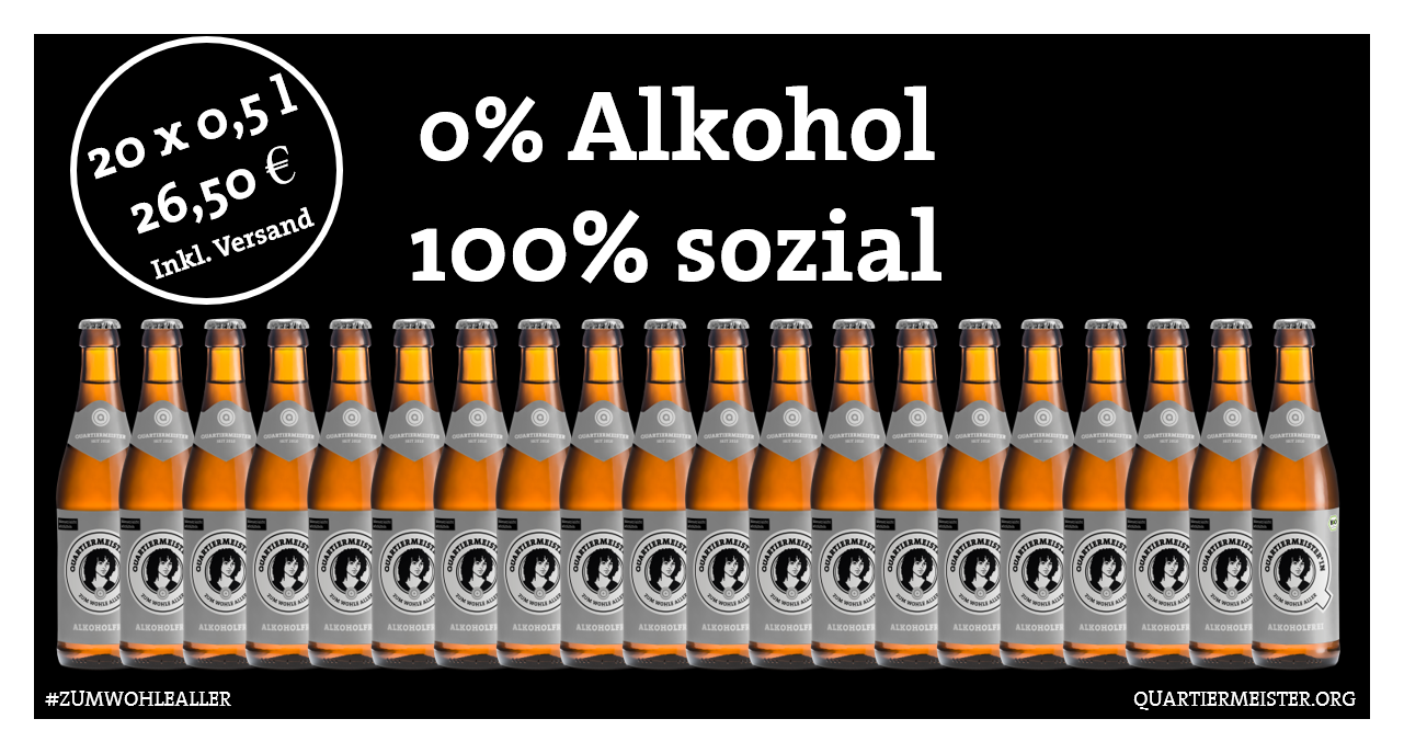 annika.bruemmerNa? Waren die Feiertage mal wieder etwas ZU feucht-fröhlich? Jetzt fängt sie an, die wilde Detox-Zeit, denn ein bisschen Frühjahrsputz hat noch keinem Körper und keiner Leber geschadet! Wie praktisch, dass wir genau jetzt eine Super-Duper-Aktion am Start haben, die euch hilft, einen Sober January zu überstehen: Unser naturtrübes, isotonisches Bio-Alkoholfreies! Und das zum unschlagbaren Preis von 26,60 € - inkl. Versand & Pfand. Dafür gibt es sage und schreibe 20 halbe Humpen direkt nach Hause*. Und das Beste ist: Für jeden Liter Quartiermeister spenden wir 10 Cent an soziale Gemeinschaftsprojekte