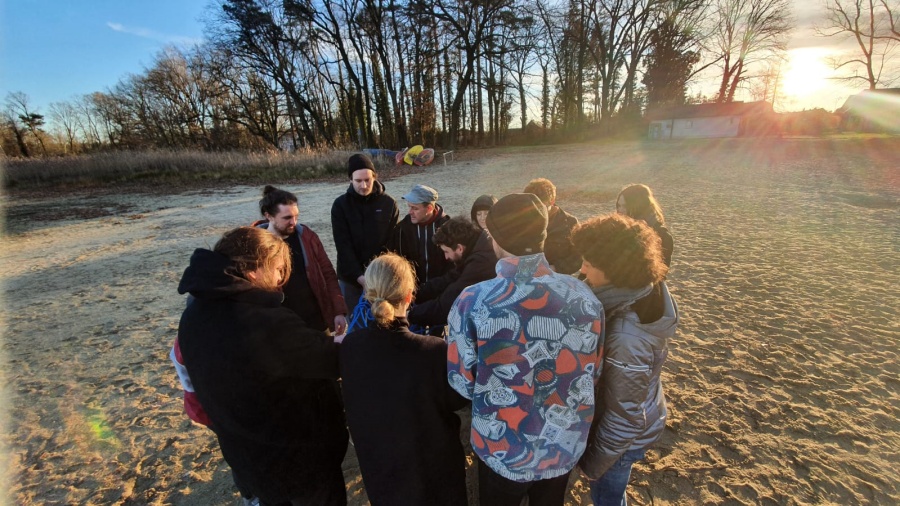 Weiter ging es mit Teambuilding- und Kooperationsübungen mit Rahel vom Institut für multiprofessionelle Kooperation. Einige von uns kannten Rahel schon vom Vereins-Retreat im Oktober. Wir haben lustige Kooperationsübungen durchgeführt, in denen wir u. A. als Team ein immaginäres Moor mit Hilfe von Platten überwinden mussten, ohne vom Krokodiil gefressen zu werden (Rahel hat netterweise die Rolle des Krokodils übernommen). Das hört sich jetzt vielleicht einfach an, ist es aber nicht 😉 Als eingespieltes Team haben wir im ersten Anlauf die Challenge gemeistert ohne Teamverluste zu verzeichnen und wurden im Anschluss von Rahel in den höchsten Tönen für unser gemeinschaftliches Verhalten gelobt. Das ging runter wie Butter und war für uns als Team eine tolle Bestätigung für das, was wir fühlen: Gemeinsam sind wir echt ne geile Bande.