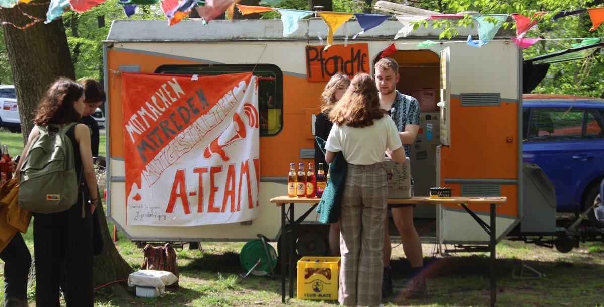 Der MO!N ist dadurch bereits das Wiedererkennungsmerkmal des A-Teams in der Stadt geworden. Ob wir ihn für einen Infostand, zum mobilen Getränkeverkauf oder für Interviews mit Lokalpolitiker:innen nutzen: Der MO!N hat sich die letzten Jahre durch seine Vielseitigkeit stark bewährt. Leider hat der MO!N nur noch bis Ende Juni TÜV und bei seinem jetzigen Zustand sind einige Reparaturen nötig. Diese können wir uns aber nicht leisten und die Chance, dass dieser wichtige Teil des A-Teams verloren geht, ist sehr wahrscheinlich.